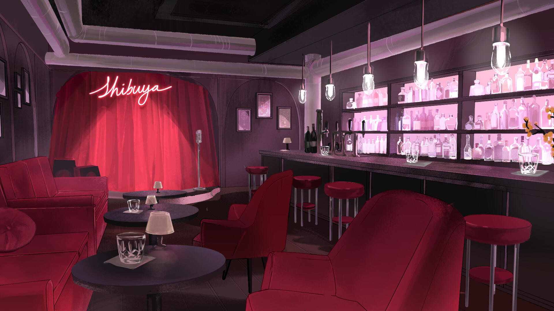 Background art for Killer Chat: Expanded Edition, featuring three new backgrounds for additional character paths with respect to their personalities and routes. Matching with previous style established from earlier edition illustrated by JDMT.RESPONSIBILITIES