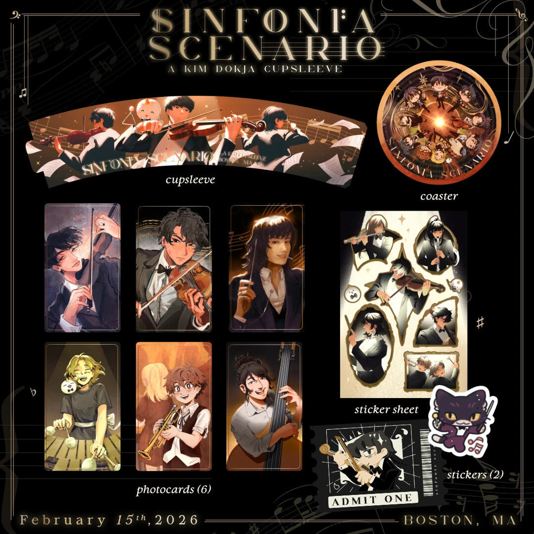 Sinfonia Scenario - ORV Cupsleeve BostonCo-hosted the Boston 2026 Omniscient Reader's Viewpoint Fan Cupsleeve event. Event was a one-day fan-run pop up in collaboration with LimeRed teahouse located in Boston, MA. Created merchandise under a "symphonic orchestra" theme, with online and in-person sales to support the event.Managed branding, design, and the artists of the team, along with fulfillment. Posts were designed for viewing across multiple social media platforms.
