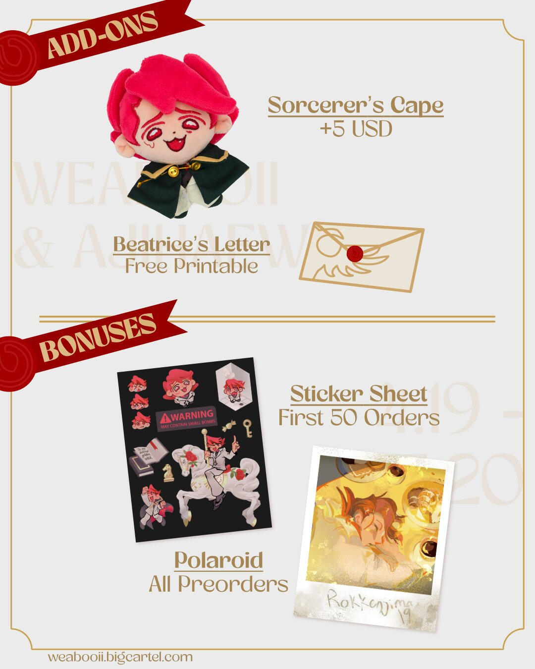 Merch (Assorted)Illustrate and produce merchandise (both original and fanmade), along with exhibiting and conventions and fulfilling orders for the past four years. Responsible for all design and communication with manufacturers.Merch & Convention Site - ajihaew